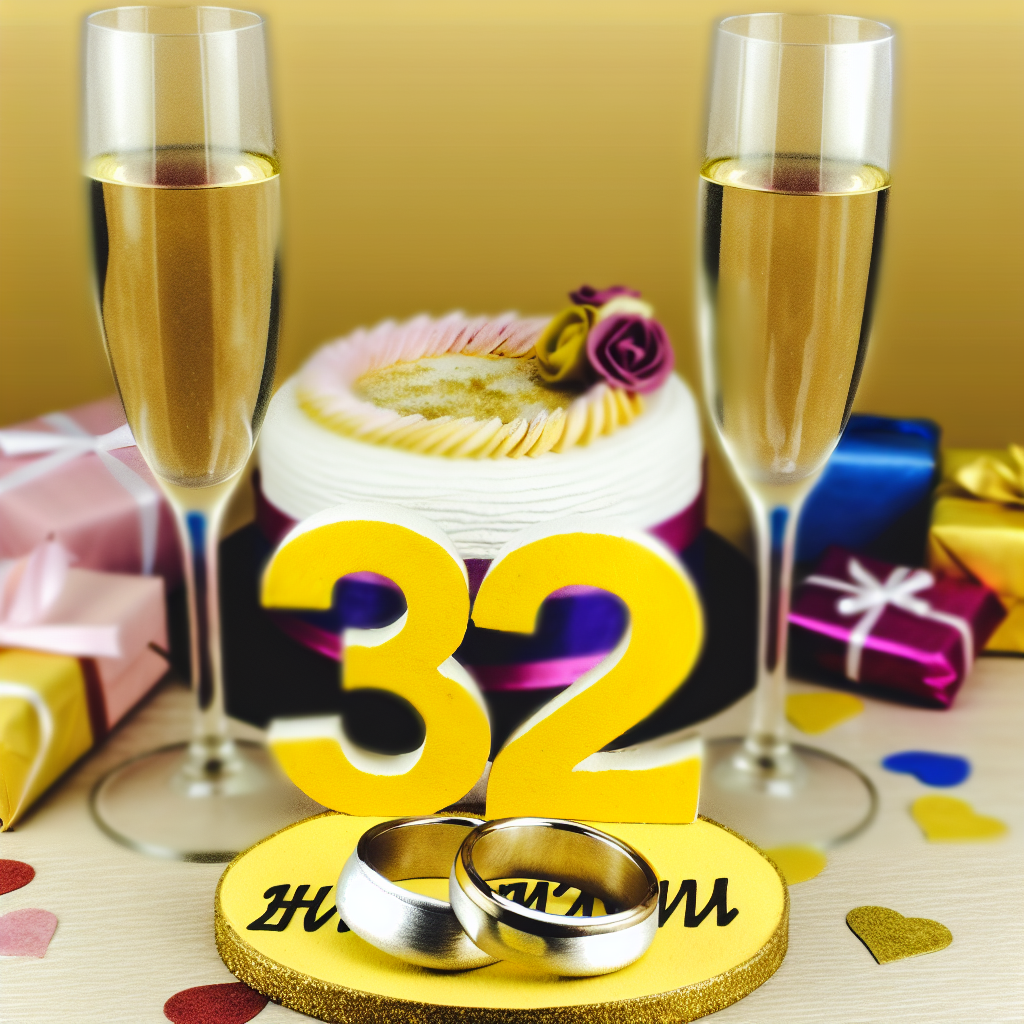 З прекрасними вітаннями! 🌟 32 роки – це музика, яка звучить у вашому серці. Бажаю вам радості, миру та нескінченного кохання. Щастя вам! 🥂💑