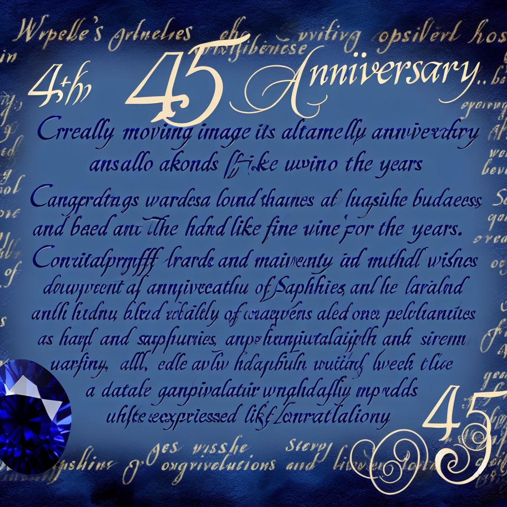 Сафір вашої любові буде сяяти вічно! 💎 45 років разом – це період, коли ви навчили мир, що справжня любов існує. Дякуємо за це! З днем святкування! 🌟✨