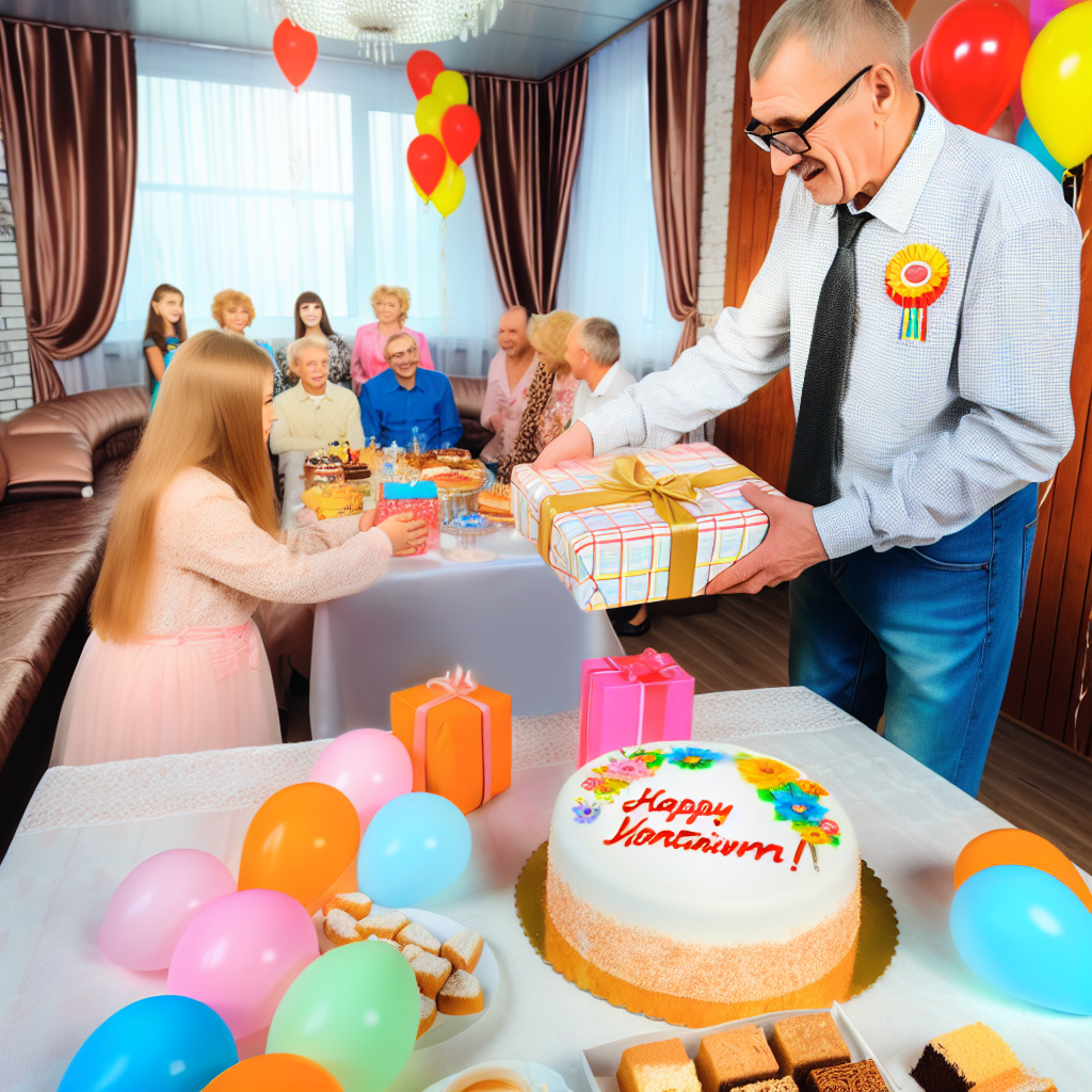 - Обмін подарунками — традиційна практика дарування подарунків та квітів іменинику