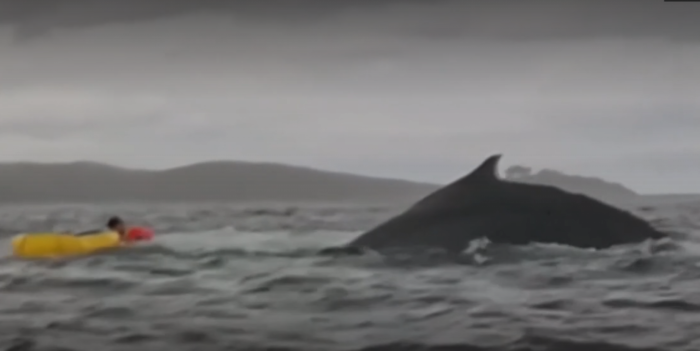 На щастя, до його байдарці була прикріплена камера, яка зафіксувала момент, коли кит випадково «схопив» Адріана. Переглядаючи запис, хлопець був шокований розмірами тварини.