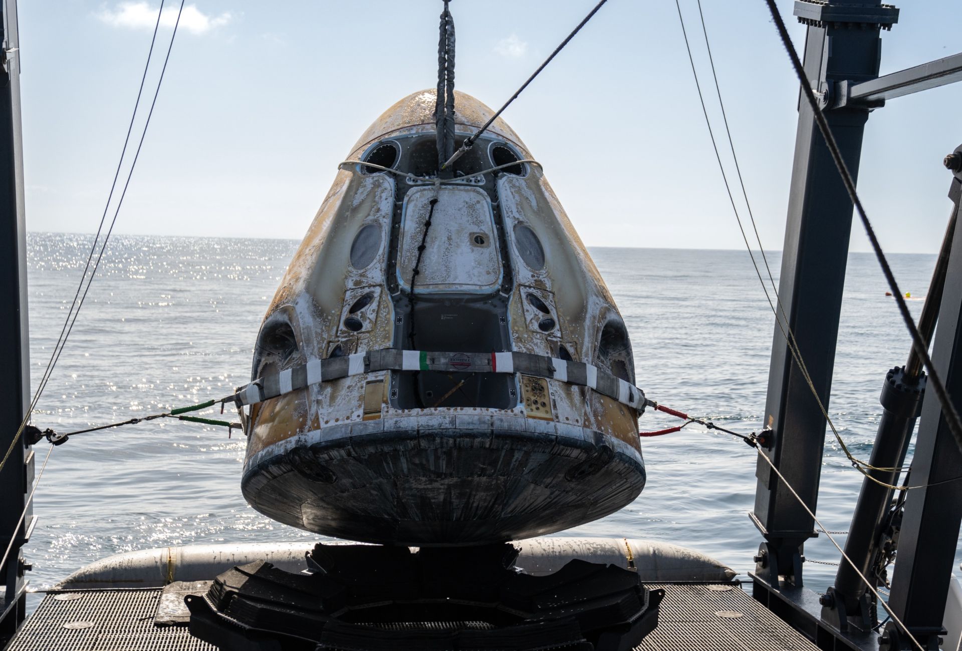 Після спуску всі четверо учасників змогли самостійно покинути капсулу. Вони стали першими людьми за останні 50 років, які завершили космічну місію, повернувшись у Тихий океан. Остання така посадка відбулася під час місії “Аполлон-Союз” у 1975 році.