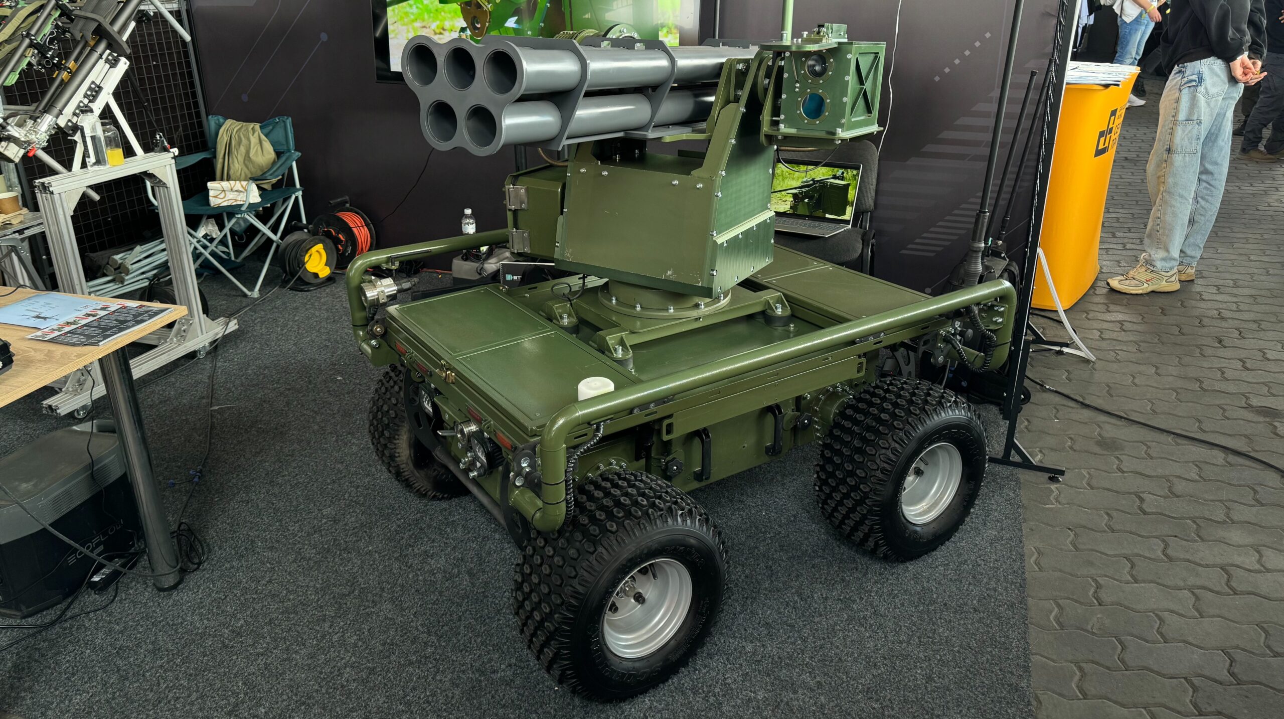 Українська компанія FRDM Group представила нову версію робототехнічного D-21 Land Robotic D-21 з бойовим модулем D-18, який оснащений п'ятьма екскурсоводами для ракет 70 мм. Журналіст оборони спілкувався з розробником системи в Brave1 Tech Tech Valley 2025.